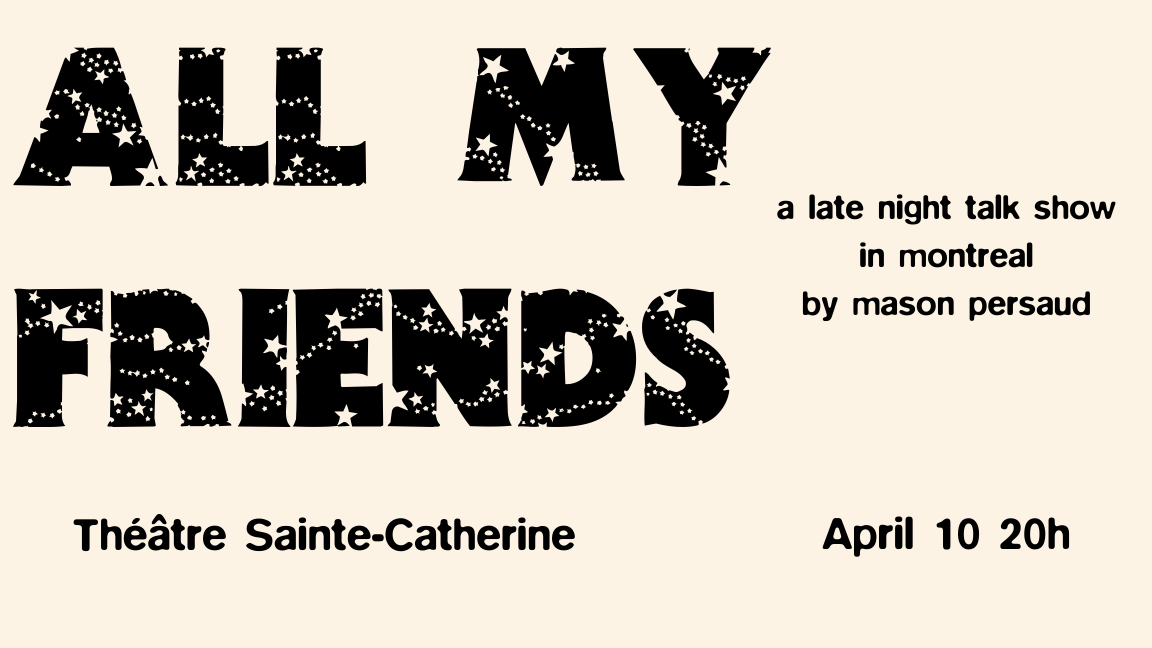All My Friends is a new late night talk show in the city of Montreal. The show will feature local artists, comedy, music, and more. This is unlike any show […]